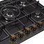 Выбор газовой варочной панели чаще всего обусловлен тем, что в частный дом или квартиру проведен именно газ в качестве обогрева. Работать с этой моделью довольно просто, так как мощность нагрева видна невооруженным взглядом — по силе огня в горелке. Количество конфорок в этой модели: 5. Горелки с тройной короной имеют несколько ступеней нагрева — в зависимости от них образуется несколько кругов пламени.