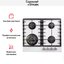 Цвет — белый. Благодаря рамке она отделена от рабочей зоны и прочнее закреплена на столешнице. Открытый огонь не страшен ни вашей посуде, ни вам, так как горелки надежно закрыты решетками. Материал самой поверхности: закаленное стекло. Управление этой моделью механическое. Для переключения уровней нагрева, выбора функций используются следующие переключатели: поворотные. Простая система контроля за прибором делают его более универсальным, ведь разобраться сможет кто угодно.