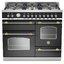 Устройства с тремя духовками также имеют один основной и две дополнительных шкафа разного объема: например, плиты Bertazzoni оснащены большой духовкой объемом 69 литров, средней объемом 54 литра и малой объемом 24 литра. Духовки располагаются в два ряда: две меньшие духовки в одном ряду, большая и ящик для посуды в другом.