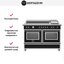 Устройства с тремя духовками также имеют один основной и две дополнительных шкафа разного объема: например, плиты Bertazzoni оснащены большой духовкой объемом 69 литров, средней объемом 54 литра и малой объемом 24 литра. Духовки располагаются в два ряда: две меньшие духовки в одном ряду, большая и ящик для посуды в другом.
