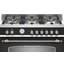 Устройства с тремя духовками также имеют один основной и две дополнительных шкафа разного объема: например, плиты Bertazzoni оснащены большой духовкой объемом 69 литров, средней объемом 54 литра и малой объемом 24 литра. Духовки располагаются в два ряда: две меньшие духовки в одном ряду, большая и ящик для посуды в другом.