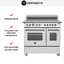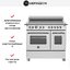 Устройства с тремя духовками также имеют один основной и две дополнительных шкафа разного объема: например, плиты Bertazzoni оснащены большой духовкой объемом 69 литров, средней объемом 54 литра и малой объемом 24 литра. Духовки располагаются в два ряда: две меньшие духовки в одном ряду, большая и ящик для посуды в другом.