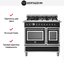 Устройства с тремя духовками также имеют один основной и две дополнительных шкафа разного объема: например, плиты Bertazzoni оснащены большой духовкой объемом 69 литров, средней объемом 54 литра и малой объемом 24 литра. Духовки располагаются в два ряда: две меньшие духовки в одном ряду, большая и ящик для посуды в другом.