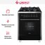 Устройства с тремя духовками также имеют один основной и две дополнительных шкафа разного объема: например, плиты Bertazzoni оснащены большой духовкой объемом 69 литров, средней объемом 54 литра и малой объемом 24 литра. Духовки располагаются в два ряда: две меньшие духовки в одном ряду, большая и ящик для посуды в другом.