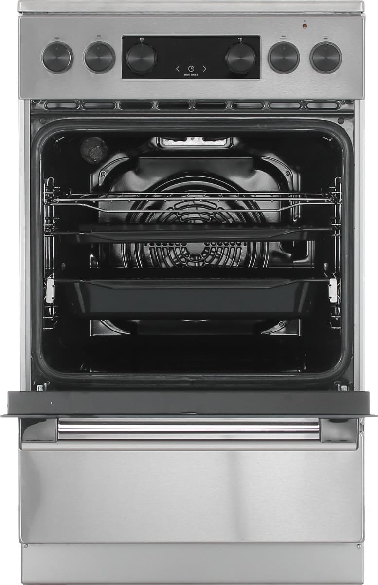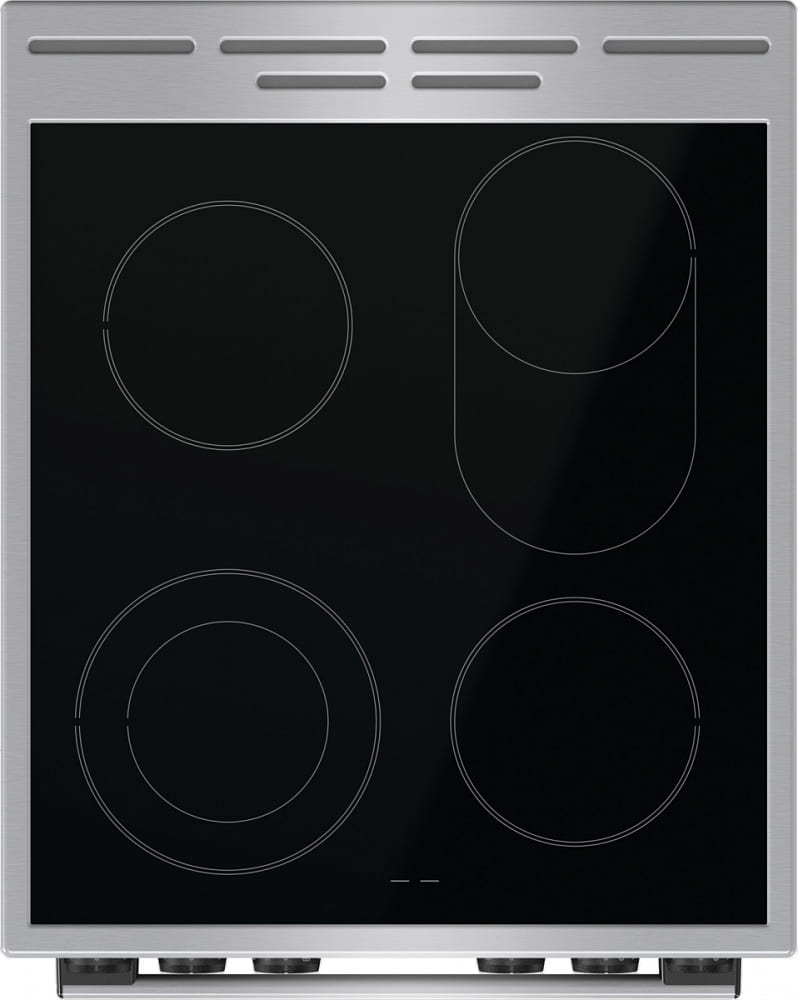 Варочная поверхность из стеклокерамики оборудована четырьмя Hi-Light зонами, одна из которых двухконтурная и одна — с овальной зоной расширения. Это даёт гибкость при использовании посуды разных диаметров и ускоряет разогрев, когда нужна высокая мощность. Индикация остаточного тепла для каждой конфорки повышает безопасность и помогает экономить энергию. Девять уровней мощности регулируются легко и плавно, что полезно при деликатном тушении и при быстром доведении до кипения.