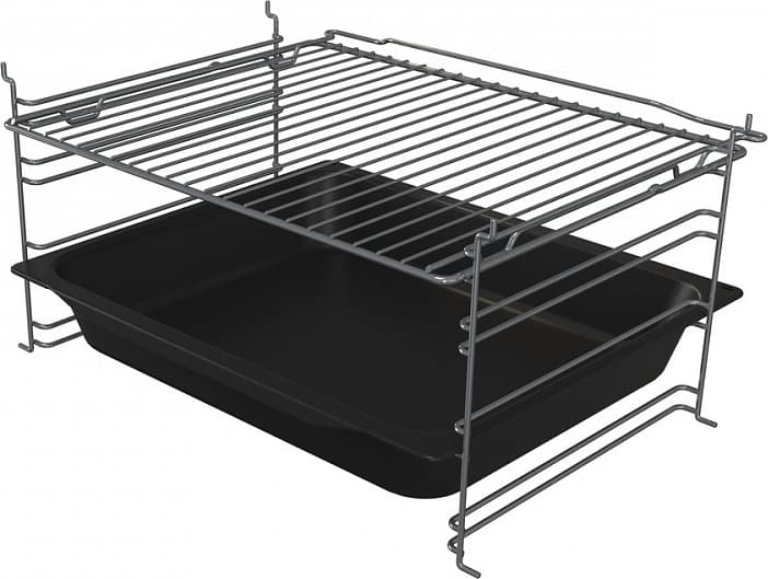 Уровни — это «этажи», на которых можно расположить решетки или противни. Чем выше количество, тем больше возможностей для создания разнообразных блюд. На каждом уровне есть выемки, в которых фиксируются противни, или телескопические направляющие.