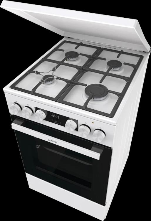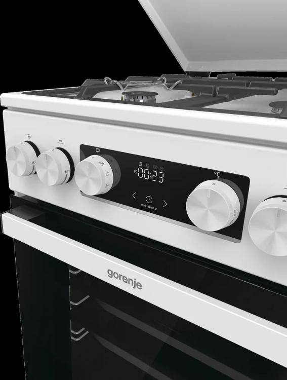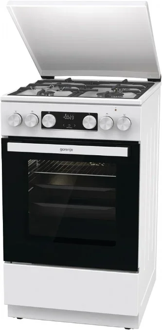 Комбинированная плита Gorenje GK5C42WF-B — отличный выбор как для квартиры, так и для частного дома. Цвет корпуса белый, он гармонично сочетается с мебелью и техникой похожих оттенков, а также может интересно выглядеть на контрасте с ними. Для управления используется удобная и понятная электронная система. Благодаря ей выбирать режимы приготовления и настраивать параметры температуры очень просто. Основная информация о процессе отображается на дисплее. Переключатели не только выполняют техническую функцию, но и поддерживают общий дизайн; тип элементов: сенсорные + поворотные.
