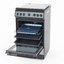 Устройства с тремя духовками также имеют один основной и две дополнительных шкафа разного объема: например, плиты Bertazzoni оснащены большой духовкой объемом 69 литров, средней объемом 54 литра и малой объемом 24 литра. Духовки располагаются в два ряда: две меньшие духовки в одном ряду, большая и ящик для посуды в другом.