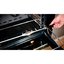 Внутренняя поверхность имеет специальное защитное покрытие: эмаль легкой очистки хорошо аккумулирует и держит тепло, не нуждается в специфическом уходе. Следуйте инструкции для удаления загрязнений — и прибор прослужит вам много лет без повреждений. Продуманная система направляющих для противней предупреждает падение тяжелой посуды при ее загрузке и извлечении: в этой модели используются съемные элементы. Приятный бонус — специальное отделение для хранения посуды и аксессуаров.