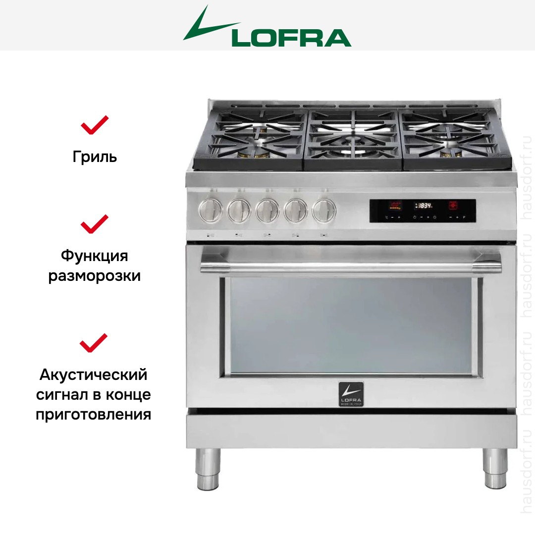 Комбинированная плита Lofra ASG96WMFT/AEO — отличный выбор как для квартиры, так и для частного дома. Цвет корпуса нержавеющая сталь, он гармонично сочетается с мебелью и техникой похожих оттенков, а также может интересно выглядеть на контрасте с ними. Для управления используется удобная и понятная электронная система. Благодаря ей выбирать режимы приготовления и настраивать параметры температуры очень просто. Основная информация о процессе отображается на дисплее. Переключатели не только выполняют техническую функцию, но и поддерживают общий дизайн; тип элементов: сенсорные + поворотные.