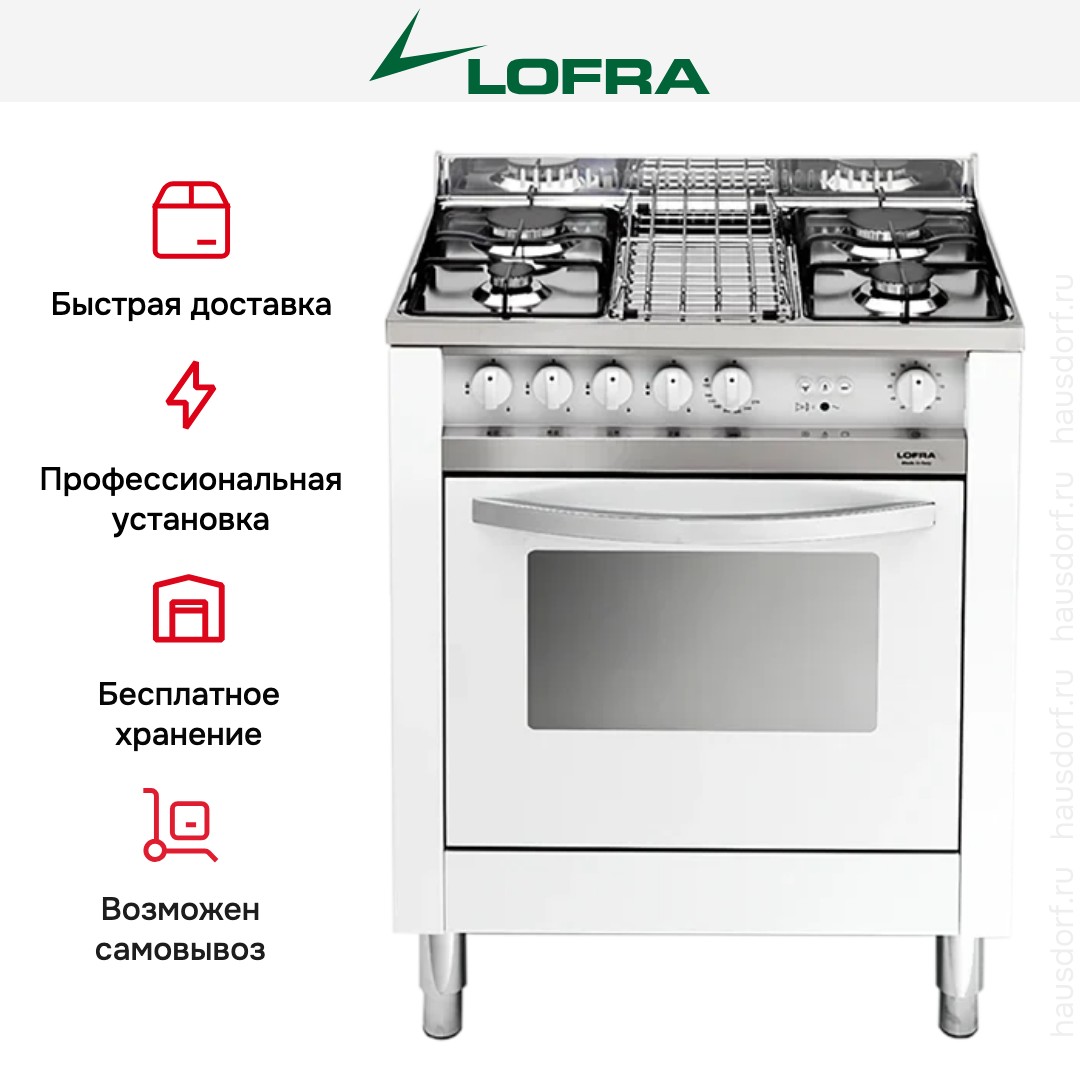 Газовая плита Lofra MB75GV — отличный выбор как для квартиры, так и для частного дома. Цвет корпуса белый жемчуг, он гармонично сочетается с мебелью и техникой похожих оттенков, а также может интересно выглядеть на контрасте с ними. Для управления используется удобная и понятная механическая система. Благодаря ей выбирать режимы приготовления и настраивать параметры температуры очень просто. Переключатели не только выполняют техническую функцию, но и поддерживают общий дизайн; тип элементов: поворотные.