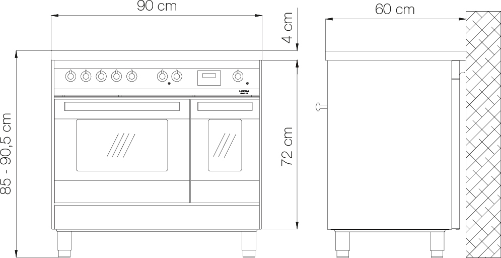 Ширина варочных центров — параметр, которых варьируется в самых больших пределах. Она зависит прежде всего от характеристик модели, в частности, от количества духовок. Производители предлагают модели минимальной шириной 59-60 см с одной духовкой. В магазинах также представлены модели с одной духовкой увеличенной ширины, которая достигает 90 см. Такую же ширину могут иметь варочные центры с двумя духовками, расположенными бок о бок. Модели Lofra с тремя духовками имеют ширину 120 см, а максимальная ширина около 196-200 см отличает модели Restart с дровяной печью и несколькими духовками.