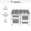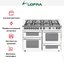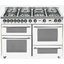 Ширина варочных центров — параметр, которых варьируется в самых больших пределах. Она зависит прежде всего от характеристик модели, в частности, от количества духовок. Производители предлагают модели минимальной шириной 59-60 см с одной духовкой. В магазинах также представлены модели с одной духовкой увеличенной ширины, которая достигает 90 см. Такую же ширину могут иметь варочные центры с двумя духовками, расположенными бок о бок. Модели Lofra с тремя духовками имеют ширину 120 см, а максимальная ширина около 196-200 см отличает модели Restart с дровяной печью и несколькими духовками.