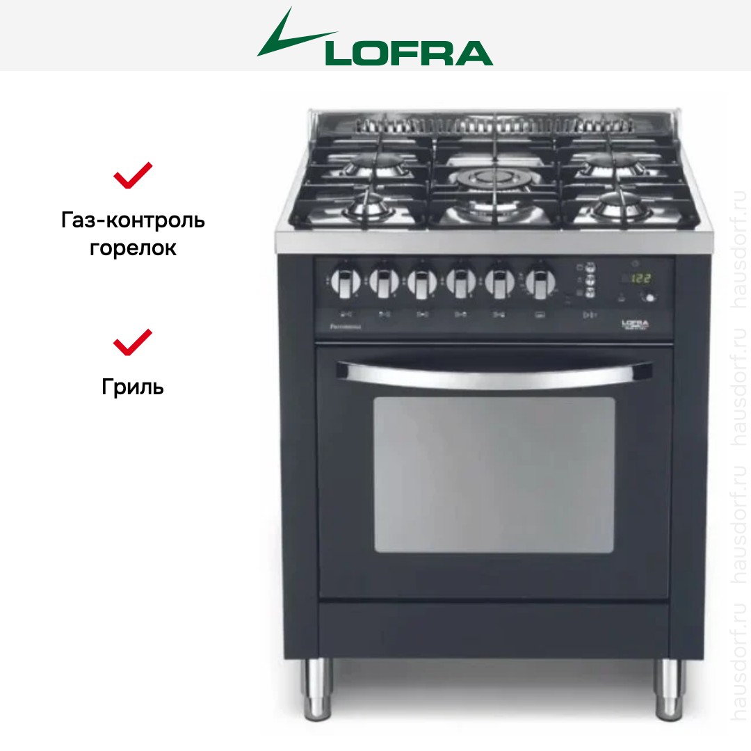 Комбинированная плита Lofra PNM76VT/C — отличный выбор как для квартиры, так и для частного дома. Цвет корпуса черный, он гармонично сочетается с мебелью и техникой похожих оттенков, а также может интересно выглядеть на контрасте с ними. Для управления используется удобная и понятная механическая система. Благодаря ей выбирать режимы приготовления и настраивать параметры температуры очень просто. Переключатели не только выполняют техническую функцию, но и поддерживают общий дизайн; тип элементов: поворотные + кнопки.