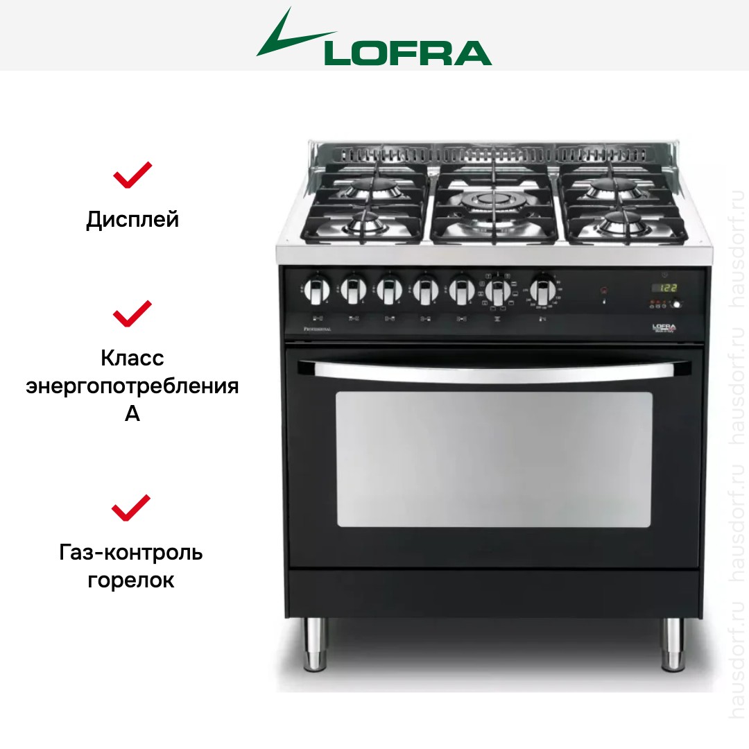 Комбинированная плита Lofra PNMG86MFT/C — отличный выбор как для квартиры, так и для частного дома. Цвет корпуса черный, он гармонично сочетается с мебелью и техникой похожих оттенков, а также может интересно выглядеть на контрасте с ними. Для управления используется удобная и понятная механическая система. Благодаря ей выбирать режимы приготовления и настраивать параметры температуры очень просто. Основная информация о процессе отображается на дисплее. Переключатели не только выполняют техническую функцию, но и поддерживают общий дизайн; тип элементов: поворотные.