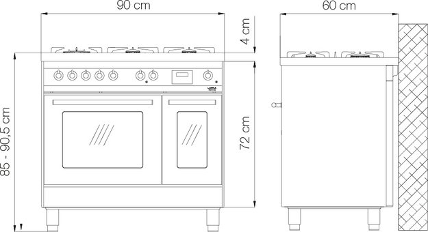 Ширина варочных центров — параметр, которых варьируется в самых больших пределах. Она зависит прежде всего от характеристик модели, в частности, от количества духовок. Производители предлагают модели минимальной шириной 59-60 см с одной духовкой. В магазинах также представлены модели с одной духовкой увеличенной ширины, которая достигает 90 см. Такую же ширину могут иметь варочные центры с двумя духовками, расположенными бок о бок. Модели Lofra с тремя духовками имеют ширину 120 см, а максимальная ширина около 196-200 см отличает модели Restart с дровяной печью и несколькими духовками.