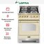 Ширина варочных центров — параметр, которых варьируется в самых больших пределах. Она зависит прежде всего от характеристик модели, в частности, от количества духовок. Производители предлагают модели минимальной шириной 59-60 см с одной духовкой. В магазинах также представлены модели с одной духовкой увеличенной ширины, которая достигает 90 см. Такую же ширину могут иметь варочные центры с двумя духовками, расположенными бок о бок. Модели Lofra с тремя духовками имеют ширину 120 см, а максимальная ширина около 196-200 см отличает модели Restart с дровяной печью и несколькими духовками.