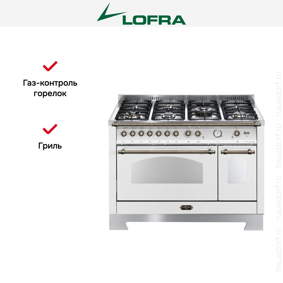 Комбинированная плита Lofra RBPD126MFT+E/2AEO Bronze — отличный выбор как для квартиры, так и для частного дома. Цвет корпуса белый жемчуг, он гармонично сочетается с мебелью и техникой похожих оттенков, а также может интересно выглядеть на контрасте с ними. Для управления используется удобная и понятная механическая система. Благодаря ей выбирать режимы приготовления и настраивать параметры температуры очень просто. Переключатели не только выполняют техническую функцию, но и поддерживают общий дизайн; тип элементов: поворотные.