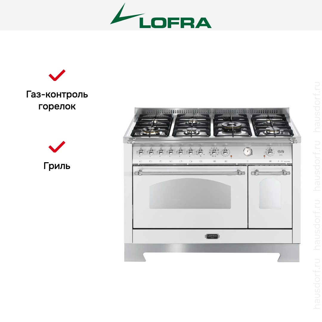 Варочный центр Лофра оборудован несколькими духовками; одну из них можно использовать как основную на постоянной основе, другие как дополнительные. Тип нагрева в камере — электрический. Размещайте противни на разной высоте в зависимости от режима или желаемого результата.