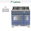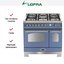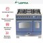 Стильный варочный центр нежного лавандового цвета подойдет светлой кухне, впишется в псевдодеревенский, прованский и подобный стиль. Работает от газа и электричества. Варочная панель оборудована пятью горелками — четыре по бокам и одна большая зона WOK в центре. Оба духовых шкафа имеют вертелы, на которых удобно прожаривать и запекать мясо.
