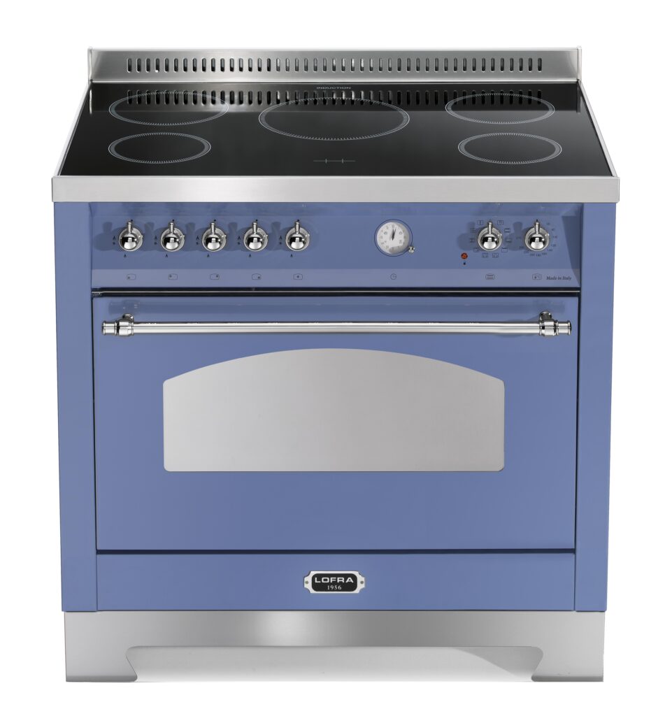 Электрическая плита Lofra RLVG96MFT/5i Chrome — отличный выбор как для квартиры, так и для частного дома. Цвет корпуса голубой, он гармонично сочетается с мебелью и техникой похожих оттенков, а также может интересно выглядеть на контрасте с ними. Для управления используется удобная и понятная механическая система. Благодаря ей выбирать режимы приготовления и настраивать параметры температуры очень просто. Переключатели не только выполняют техническую функцию, но и поддерживают общий дизайн; тип элементов: поворотные.