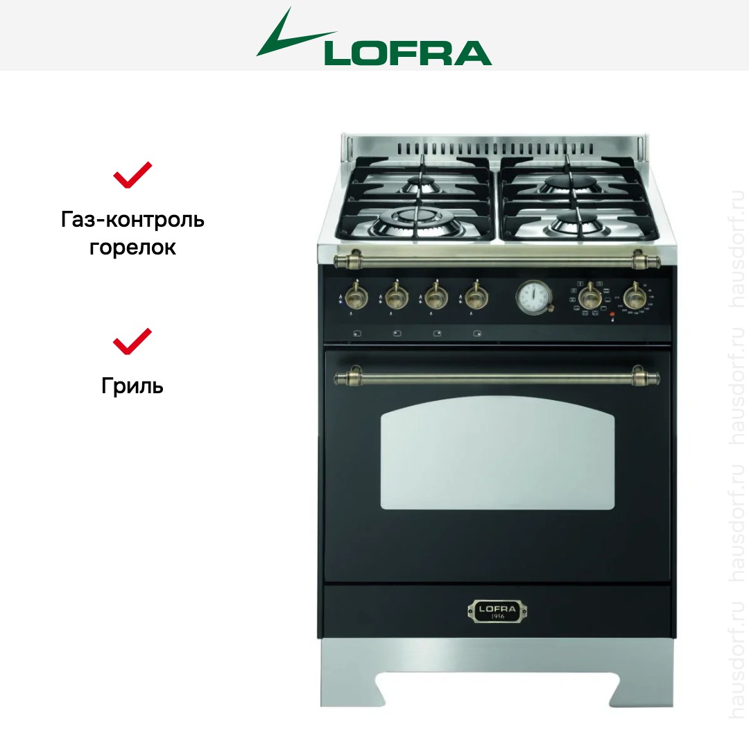 Комбинированная плита Lofra RNM66MFT/CI Bronze — отличный выбор как для квартиры, так и для частного дома. Цвет корпуса черный, он гармонично сочетается с мебелью и техникой похожих оттенков, а также может интересно выглядеть на контрасте с ними. Для управления используется удобная и понятная механическая система. Благодаря ей выбирать режимы приготовления и настраивать параметры температуры очень просто. Переключатели не только выполняют техническую функцию, но и поддерживают общий дизайн; тип элементов: поворотные.