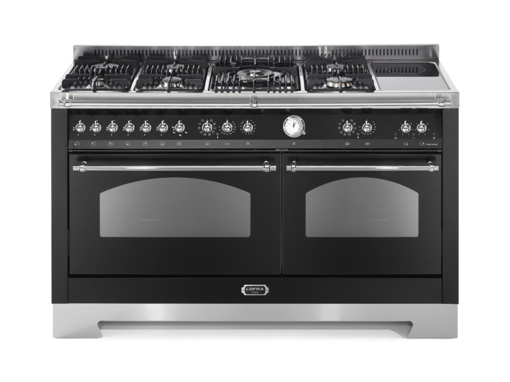 Ширина варочных центров — параметр, которых варьируется в самых больших пределах. Она зависит прежде всего от характеристик модели, в частности, от количества духовок. Производители предлагают модели минимальной шириной 59-60 см с одной духовкой. В магазинах также представлены модели с одной духовкой увеличенной ширины, которая достигает 90 см. Такую же ширину могут иметь варочные центры с двумя духовками, расположенными бок о бок. Модели Lofra с тремя духовками имеют ширину 120 см, а максимальная ширина около 196-200 см отличает модели Restart с дровяной печью и несколькими духовками.