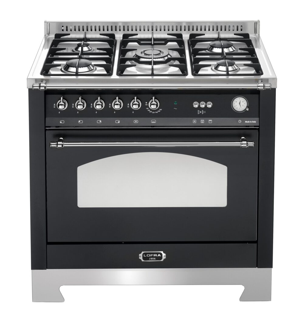 Газовая плита Lofra RNMG96GVGT/Ci Chrome — отличный выбор как для квартиры, так и для частного дома. Цвет корпуса черный, он гармонично сочетается с мебелью и техникой похожих оттенков, а также может интересно выглядеть на контрасте с ними. Для управления используется удобная и понятная механическая система. Благодаря ей выбирать режимы приготовления и настраивать параметры температуры очень просто. Переключатели не только выполняют техническую функцию, но и поддерживают общий дизайн; тип элементов: поворотные.