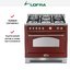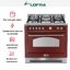 Ширина варочных центров — параметр, которых варьируется в самых больших пределах. Она зависит прежде всего от характеристик модели, в частности, от количества духовок. Производители предлагают модели минимальной шириной 59-60 см с одной духовкой. В магазинах также представлены модели с одной духовкой увеличенной ширины, которая достигает 90 см. Такую же ширину могут иметь варочные центры с двумя духовками, расположенными бок о бок. Модели Lofra с тремя духовками имеют ширину 120 см, а максимальная ширина около 196-200 см отличает модели Restart с дровяной печью и несколькими духовками.