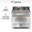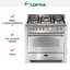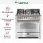 Устройства с тремя духовками также имеют один основной и две дополнительных шкафа разного объема: например, плиты Bertazzoni оснащены большой духовкой объемом 69 литров, средней объемом 54 литра и малой объемом 24 литра. Духовки располагаются в два ряда: две меньшие духовки в одном ряду, большая и ящик для посуды в другом.