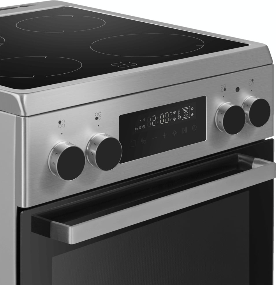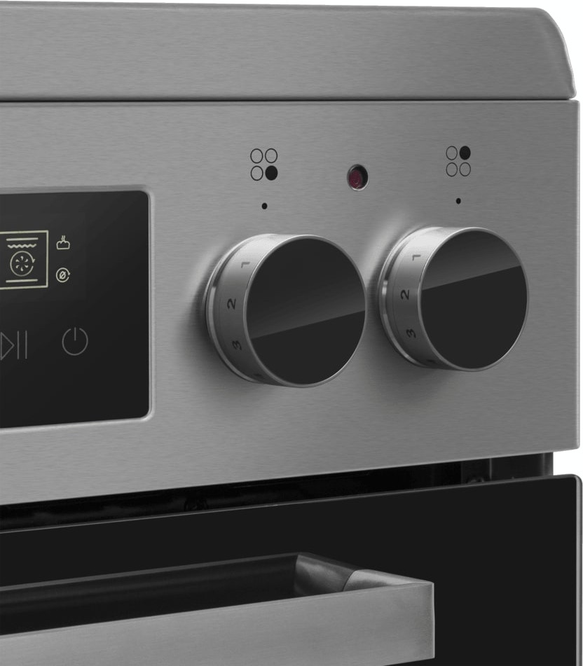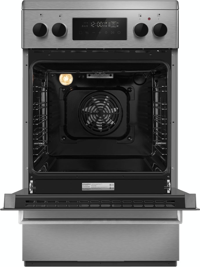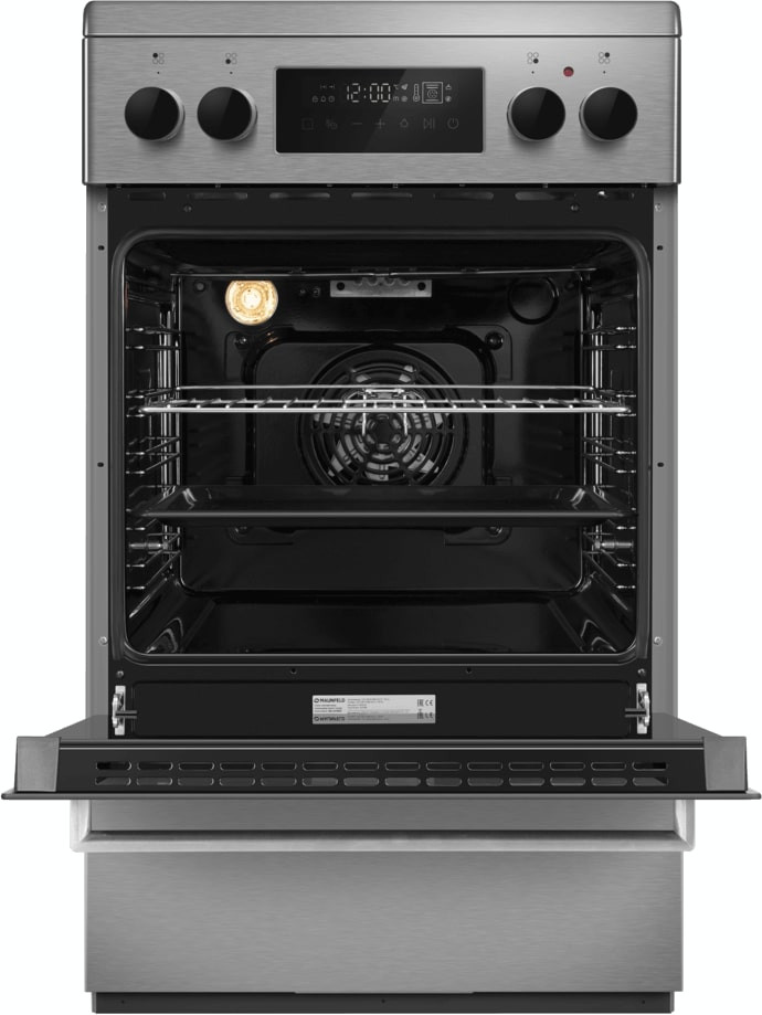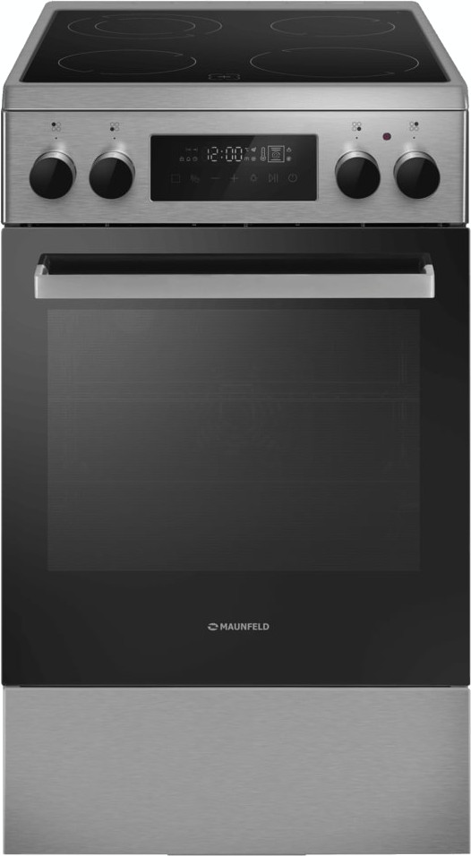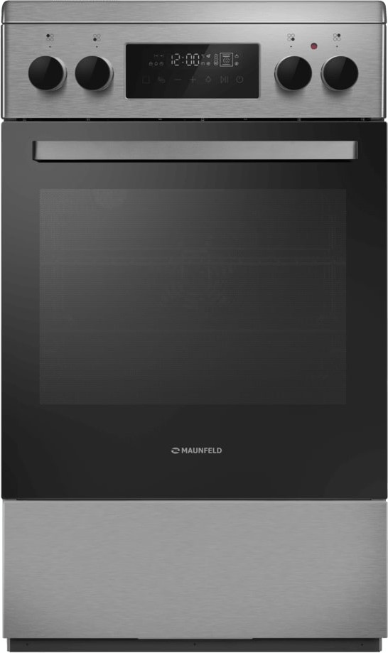 Электрическая плита Maunfeld MEC511CS09TD — отличный выбор как для квартиры, так и для частного дома. Цвет корпуса нержавеющая сталь, он гармонично сочетается с мебелью и техникой похожих оттенков, а также может интересно выглядеть на контрасте с ними. На внутренней поверхности двери расположена таблица доступных рецептов — полезная и необычная фишка. Для управления используется удобная и понятная электронная система. Благодаря ей выбирать режимы приготовления и настраивать параметры температуры очень просто. Основная информация о процессе отображается на дисплее. Переключатели не только выполняют техническую функцию, но и поддерживают общий дизайн; тип элементов: сенсорные + поворотные.