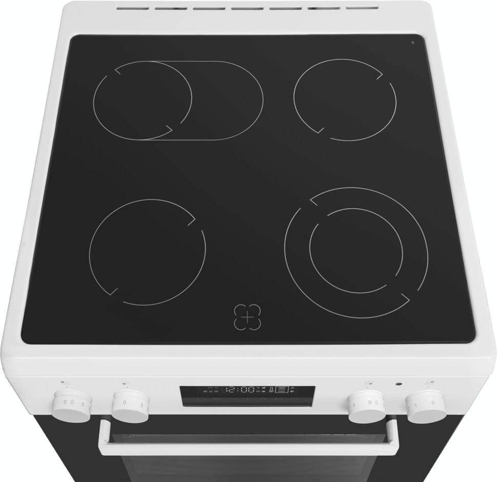 Электрическая плита Maunfeld MEC611CW09TD — отличный выбор как для квартиры, так и для частного дома. Цвет корпуса белый, он гармонично сочетается с мебелью и техникой похожих оттенков, а также может интересно выглядеть на контрасте с ними. На внутренней поверхности двери расположена таблица доступных рецептов — полезная и необычная фишка. Для управления используется удобная и понятная электронная система. Благодаря ей выбирать режимы приготовления и настраивать параметры температуры очень просто. Основная информация о процессе отображается на дисплее. Переключатели не только выполняют техническую функцию, но и поддерживают общий дизайн; тип элементов: сенсорные + поворотные.