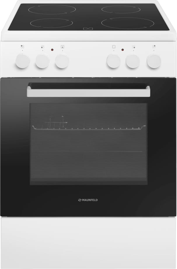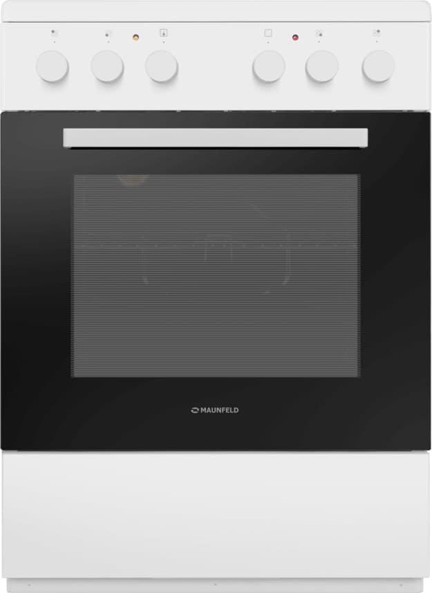 Электрическая плита Maunfeld MEC65CW07 — отличный выбор как для квартиры, так и для частного дома. Цвет корпуса белый, он гармонично сочетается с мебелью и техникой похожих оттенков, а также может интересно выглядеть на контрасте с ними. На внутренней поверхности двери расположена таблица доступных рецептов — полезная и необычная фишка. Для управления используется удобная и понятная механическая система. Благодаря ей выбирать режимы приготовления и настраивать параметры температуры очень просто. Переключатели не только выполняют техническую функцию, но и поддерживают общий дизайн; тип элементов: поворотные.