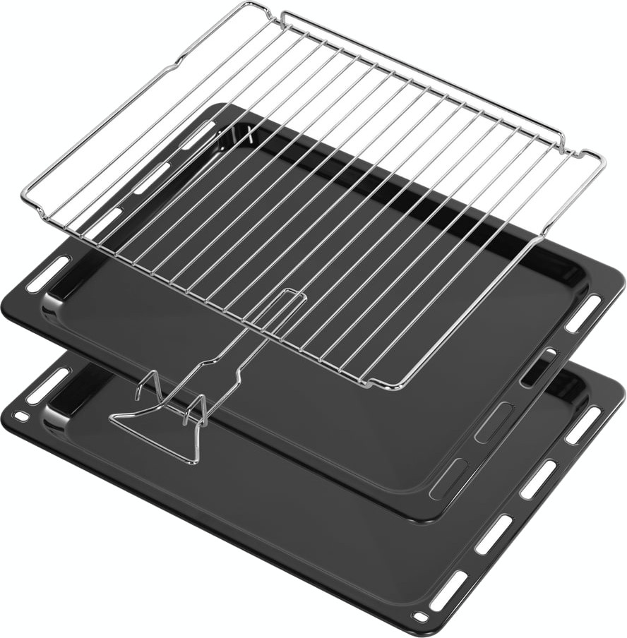 В комплект поставки вместе с варочным центром входят разнообразные аксессуары для приготовления пищи в духовом шкафу и на варочной панели. В стандартный комплект, как правило, включаются два противня — глубокий и мелкий. Мелкий противень предназначается для некоторых видов выпечки — например, печенья, открытых пирогов или пиццы. Глубокий противень подойдет для выпечки закрытых пирогов, приготовления запеканок, мясных и овощных блюд или блюд из птицы. Материалом изготовления таких противней может служить как металл с не пригорающим покрытием, так и нержавеющая или эмалированная сталь. Иногда один из противней изготавливается из жаропрочного стекла. Еще один обязательный элемент — решетка для приготовления на гриле. Решетка выполняется из нержавеющей стали: если на ней готовится мясо, птица или другие продукты, на дно камеры необходимо поместить поддон, в который будет стекать жир и сок, выделившийся при жарке.