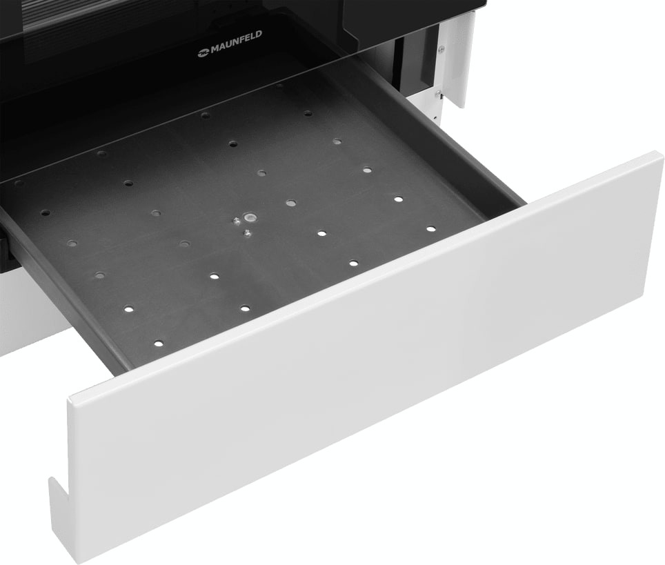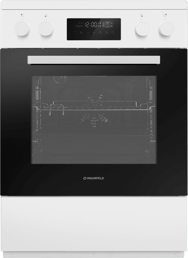 Электрическая плита Maunfeld MIC611W01TD — отличный выбор как для квартиры, так и для частного дома. Цвет корпуса белый, он гармонично сочетается с мебелью и техникой похожих оттенков, а также может интересно выглядеть на контрасте с ними. На внутренней поверхности двери расположена таблица доступных рецептов — полезная и необычная фишка. Для управления используется удобная и понятная электронная система. Благодаря ей выбирать режимы приготовления и настраивать параметры температуры очень просто. Основная информация о процессе отображается на дисплее. Переключатели не только выполняют техническую функцию, но и поддерживают общий дизайн; тип элементов: сенсорные + поворотные.
