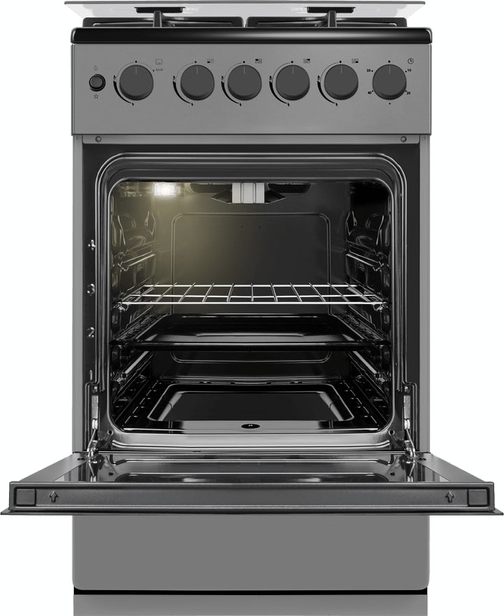 Газовая плита Maunfeld MGC50GCGR08D — отличный выбор как для квартиры, так и для частного дома. Цвет корпуса серый, он гармонично сочетается с мебелью и техникой похожих оттенков, а также может интересно выглядеть на контрасте с ними. Для управления используется удобная и понятная механическая система. Благодаря ей выбирать режимы приготовления и настраивать параметры температуры очень просто. Переключатели не только выполняют техническую функцию, но и поддерживают общий дизайн; тип элементов: поворотные + кнопки.