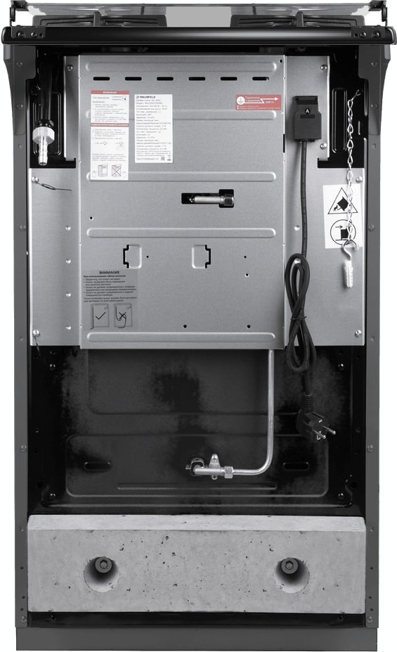 Газ автоматически зажигается без открытого огня. В духовом шкафу установлен пьезоэлемент, который высекает искру.