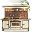 Гораздо разнообразнее представлена фурнитура в моделях в классическом, средиземноморском, деревенском или ретро-дизайне. Так, модели производства Lofra оснащаются фигурными рейлингами и поворотными переключателями цвета латуни, состаренного серебра, хрома, золота. В варочных центрах La Cornue интерес представляет круглая накладная ручка дверцы духовки серебристого цвета. Фурнитурой в стиле ретро оснащаются варочные центры производства Smeg, Kaiser, Bertazzoni, но особенно разнообразны и оригинальны модели производства итальянской компании Restart с фурнитурой из меди и латуни. Каждая такая модель изготавливается по индивидуальному проекту, и покупатель может выбрать цвет и форму переключателей, дверцы и ручек духовых шкафов и другие элементы дизайна.