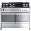 Комбинированная плита Smeg A4-8 — отличный выбор как для квартиры, так и для частного дома. Цвет корпуса нержавеющая сталь, он гармонично сочетается с мебелью и техникой похожих оттенков, а также может интересно выглядеть на контрасте с ними. Для управления используется удобная и понятная электронная система. Благодаря ей выбирать режимы приготовления и настраивать параметры температуры очень просто. Основная информация о процессе отображается на дисплее. Переключатели не только выполняют техническую функцию, но и поддерживают общий дизайн; тип элементов: поворотные.