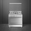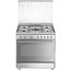 Варочный центр Smeg SX91SV9 с газовыми конфорками и электрическим духовым шкафом напоминает традиционные кухонные плиты. Корпус этого отдельно стоящего устройства изготовлен из нержавеющей стали, общая ширина составляет 90 см, а высота — 85 см. Ручки и отделка также выполнены из нержавейки. Электромеханическая панель управления с поворотными переключателями рассчитана на управление и газовой варочной панелью, и электродуховкой. Температуру можно регулировать с точностью до градуса в пределах от 50 до 260 °С.