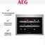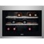 Винный шкаф AEG KWE884520M — компактная встраиваемая модель (шириной 59, 5 см и высотой 40 см) серии Wine Cellar стального цвета с фронтоном черного оттенка. Сенсорная панель управления с электронным дисплеем, показывающим выбранный режим работы устройства, находится над камерой хранения.