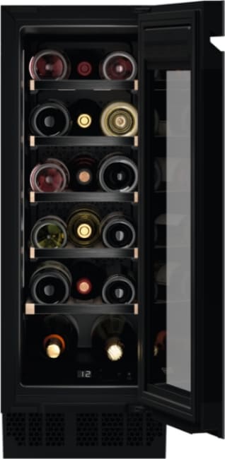 Винный холодильник AEG AWUS018B7B имеет одну температурную зону, в которой можно разместить бутылки и единовременно выставить только одну комбинацию настроек. Он встраивается в нишу, что удобно, если у вас ограничен метраж помещения. Благодаря компактным размерам данная модель — отличный выбор для офиса, гостиничного номера. Количество бутылок, которое можно разместить с учетом полной комплектации и из расчета объема бутылки 0,75 л, — 18 шт.