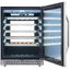 Стеклянная дверь — дополнительный изящный штрих к общему дизайну модели. Специальное покрытие защищает вино от влияния ультрафиолетовых лучей, которые проникают, если шкаф находится в солнечной комнате. Хранение становится еще безопаснее и герметичнее благодаря нескольким слоям стекол. Цвет корпуса — серебристый.