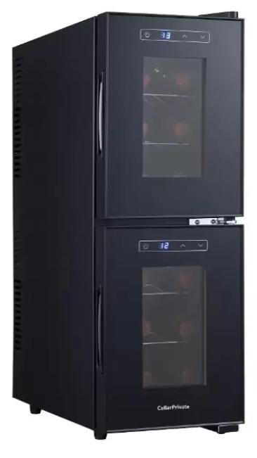 Две камеры в технике такого типа встречаются реже, чем в обычных холодильниках, эти приборы чаще всего предназначены для ресторанов или крупных коллекционеров. Охлажденный воздух поступает внутрь благодаря термоэлектрическому элементу. Размораживается автоматически, поэтому не нужно вручную удалять иней со стенок и поддерживать тем самым оптимальные условия. Общий диапазон температур, которые можно установить: 7-18 градусов.