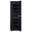Стеклянная дверь — дополнительный изящный штрих к общему дизайну модели. Специальное покрытие защищает вино от влияния ультрафиолетовых лучей, которые проникают, если шкаф находится в солнечной комнате. Цвет корпуса — черный.