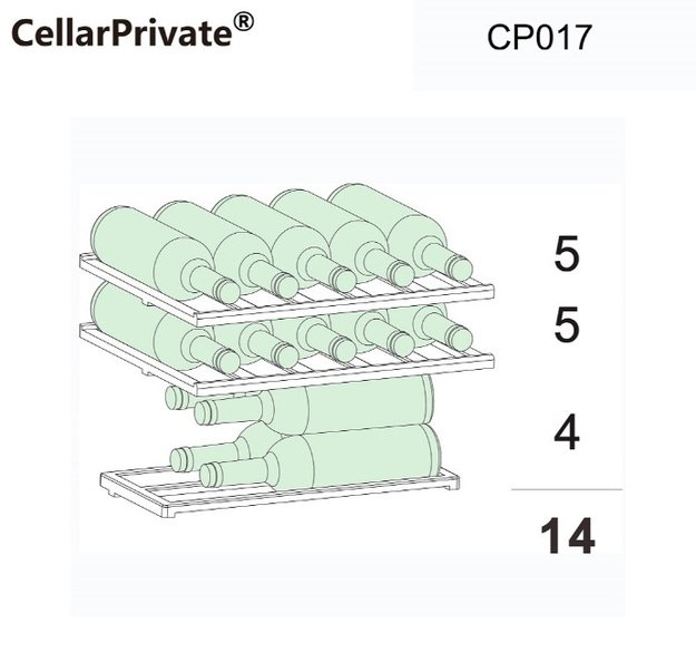 Винный холодильник CellarPrivate CP017 имеет одну температурную зону, в которой можно разместить бутылки и единовременно выставить только одну комбинацию настроек. Он устанавливается отдельно, что удобно, если у вас есть специальное помещение — кладовая, погреб и т.д. Благодаря компактным размерам данная модель — отличный выбор для офиса, гостиничного номера. Количество бутылок, которое можно разместить с учетом полной комплектации и из расчета объема бутылки 0,75 л, — 14 шт.