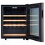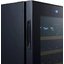 Стеклянная дверь — дополнительный изящный штрих к общему дизайну модели. Специальное покрытие защищает вино от влияния ультрафиолетовых лучей, которые проникают, если шкаф находится в солнечной комнате. Цвет корпуса — черный.