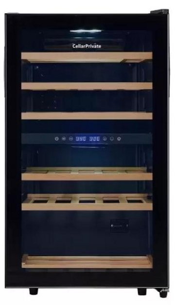 Винный холодильник CellarPrivate CP029-2T имеет две температурные зоны, в которых одновременно можно хранить разные сорта алкоголя и выставлять разные сочетания настроек. Он устанавливается отдельно, что удобно, если у вас есть специальное помещение — кладовая, погреб и т.д. Благодаря компактным размерам данная модель — отличный выбор для офиса, гостиничного номера. Количество бутылок, которое можно разместить с учетом полной комплектации и из расчета объема бутылки 0,75 л, — 28 шт.