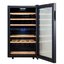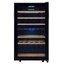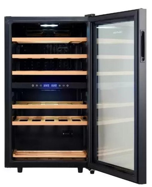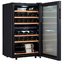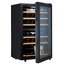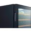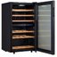 Стеклянная дверь — дополнительный изящный штрих к общему дизайну модели. Специальное покрытие защищает вино от влияния ультрафиолетовых лучей, которые проникают, если шкаф находится в солнечной комнате. Цвет корпуса — черный.