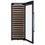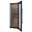 Стеклянная дверь — дополнительный изящный штрих к общему дизайну модели. Специальное покрытие защищает вино от влияния ультрафиолетовых лучей, которые проникают, если шкаф находится в солнечной комнате. Цвет корпуса — черный.